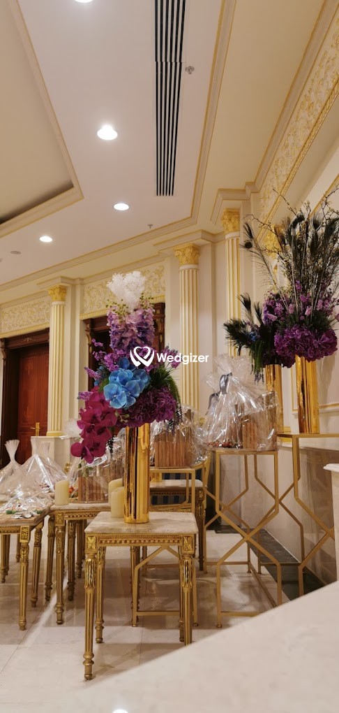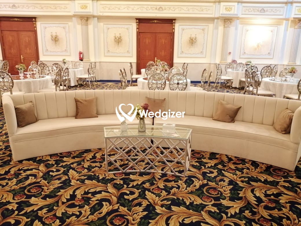 نقدم مكان استقبال واسع وجميل بسعة 1000 شخص لكل صالة. تتكون باقات الحفلات الخاصة من قاعة الاستقبال ,مسرح وممر ملكي , موظفين مدربين تدريباً جيداً لتقديم خدمات عالية الجودة, جناح للعروس. جلسات كلاسيكية متنوعة ,وسائل راحة في بيئة أنيقة,